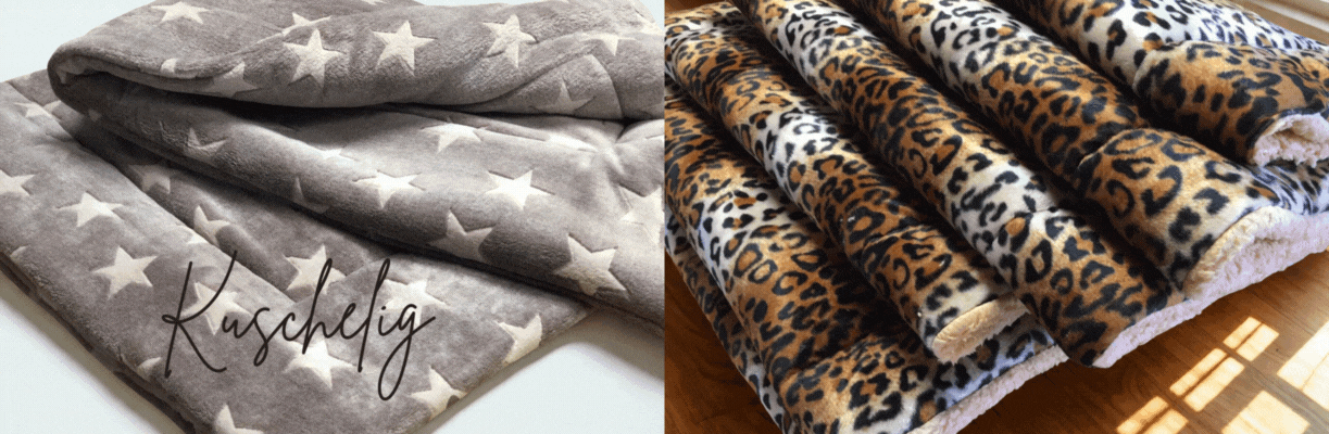Hundedecken gehören für uns zur Grundausstattung eines Hundes. Für die verschiedenen Anlässe des Alltags bestehen auch unterschiedliche Anforderungen an eine Hundedecke. Daher nähen wir Hundedecken in verschiedenen Ausführungen und für verschiedene Anlässe. Die Oberseite besteht wahlweise aus Tierfell-, Kuschelfleece-, Teddy-, Baumwoll-, Microfaserstoff oder Pelzimitat.