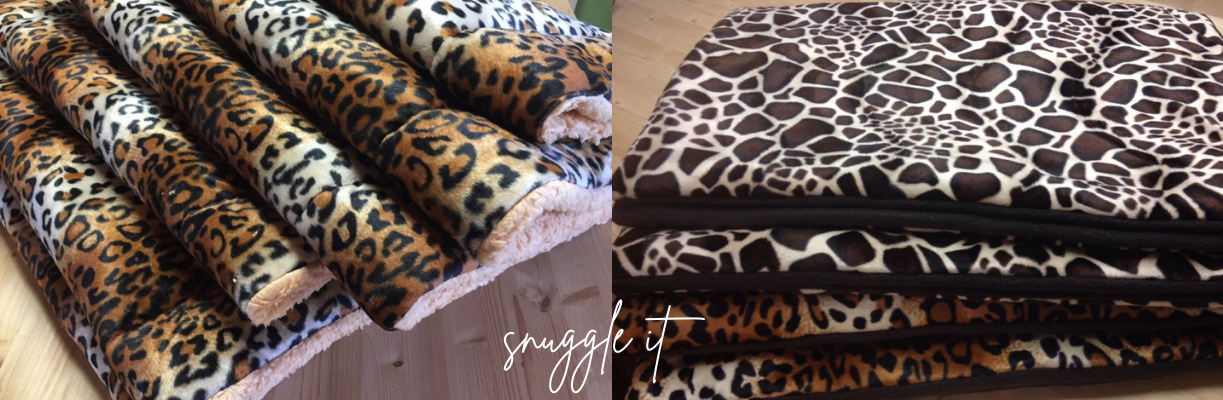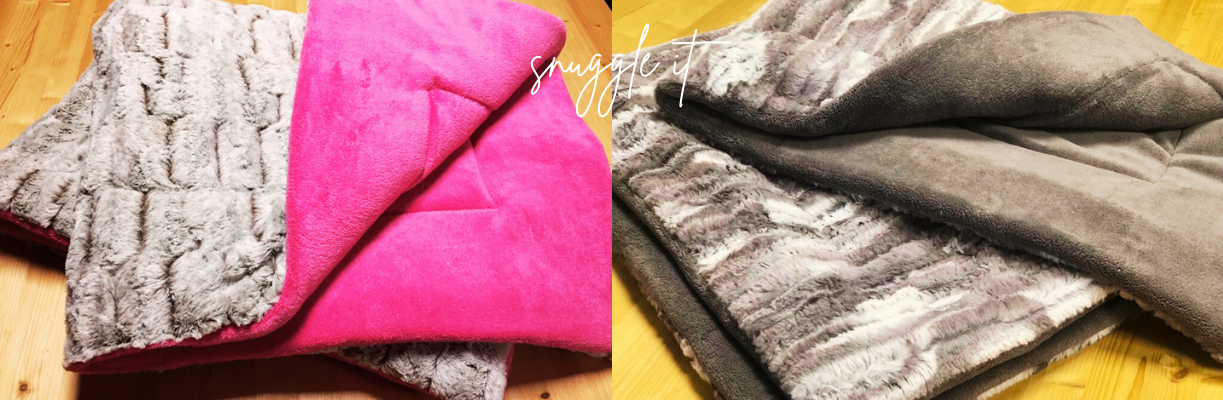 Kuscheldecke mit einer Oberseite aus Tierfellstoff/Pelzimitat und einer Unterseite wahlweise aus weichem Antipilling-, Wellnessfleece oder Teddystoff. Diese Decke nähen wir mit oder ohne Polsterung - passend für jeden Anlass.